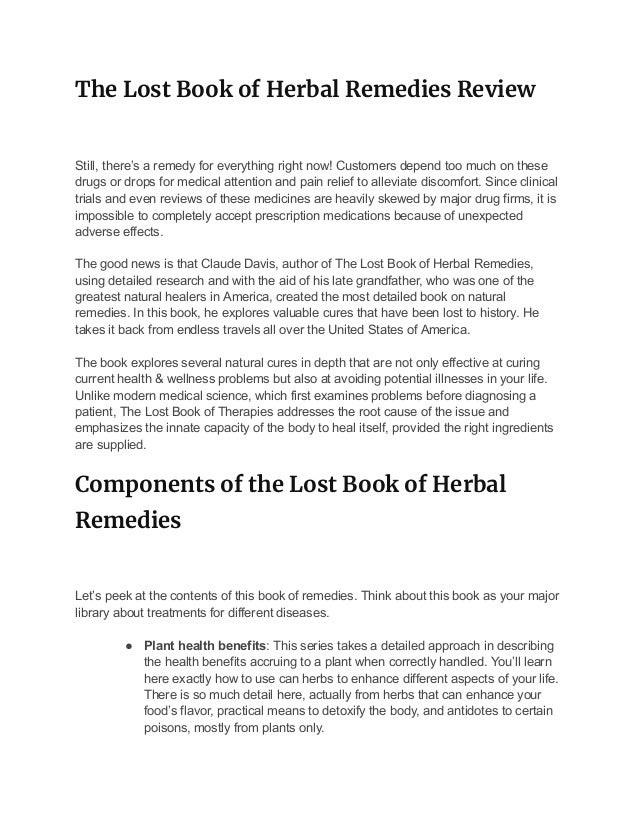 Lost Book Of Herbal Remedies Reviews - The Lost Book Of Remedies Herbal Medicine Review A Listly List - What you need to know about the lostbook of remedies.. The lost book of remedies is a product of the medical gems gleaned by his grandfather during his life and travel experiences. The lost book of herbal remedies is a huge digital book filled to the edge with helpful data. That's the biggest benefit for me; Nicole apelian, an herbalist with over 20 years of experience working with plants and claude davis, a wild west expert passionate about the lost remedies and wild edibles that kept previous generations alive. There is nothing special like old remedies that isn't written and all the.